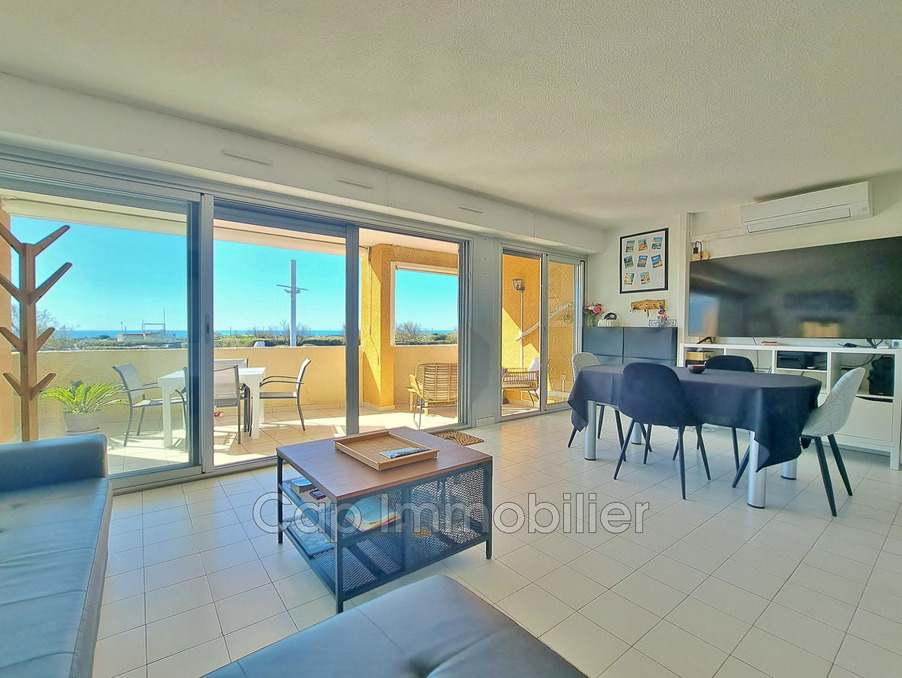 Composé d''un vaste séjour lumineux, une cuisine américaine équipée, deux chambres avec rangements, une grande salle d''eau avec douche italienne, wc séparés. GRANDE TERRASSE DE 17.50 M² OFFRANT UNE VUE MER. Belles prestations : vendu meublé, climatisation réversible, volets roulants électriques, store banne. Vendu avec parking privatif et CELLIER !