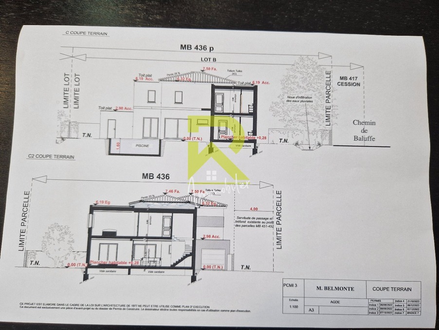 LE GRAU D'AGDE - nous vous proposons un terrain constructible de 586 m2 à 900m des plages. Exceptionnel car ce terrain dispose d'un permis de construire déjà déposé et viabilisé pour construire une habitation R+1 de 117m2 environ avec garage et pisc...